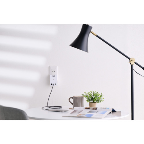 ●ACタップとUSBポートが一体になった、スマートフォンやワイヤレスイヤホンなどを充電できるコンセント直挿しタイプのモバイルUSBタップです。ACアダプターなどを別途用意することなく、本製品1つで充電できます。