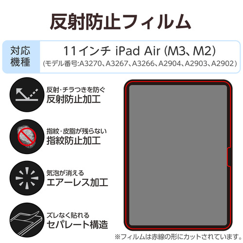 エレコム TB-A25MFLA 11インチ iPad Air ( M3/M2 ) 用 フィルム アンチグレア 固定シール付 マット
