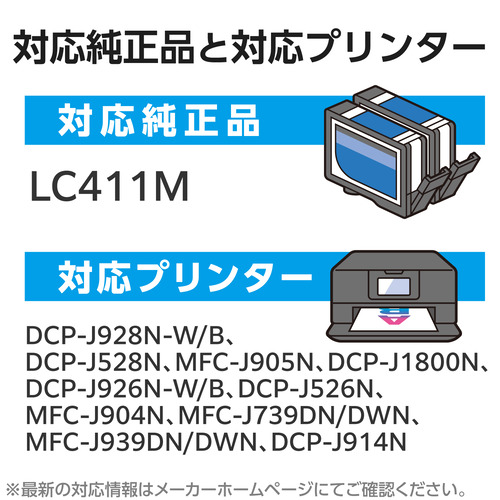 Color Creation CC-BLC411M カラークリエーション インク brother LC411M 互換 インクカートリッジ 残量検知機能 マゼンタ(染料)