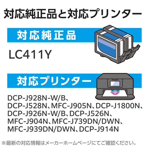 Color Creation CC-BLC411Y カラークリエーション インク brother LC411Y 互換 インクカートリッジ 残量検知機能 イエロー(染料)