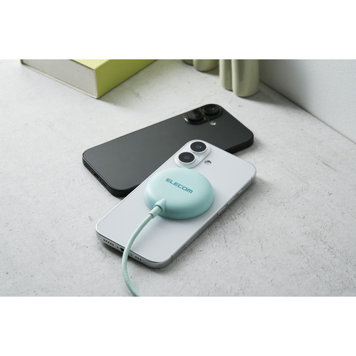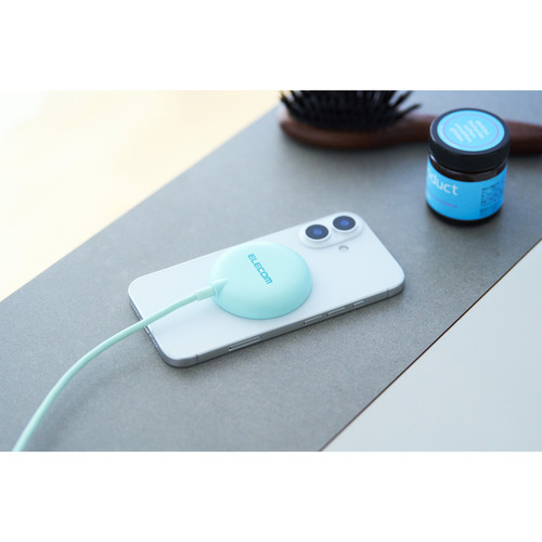 エレコム W-MA10GN ワイヤレス充電器 マグネット式 Qi2 15W 高速充電 ティール