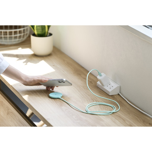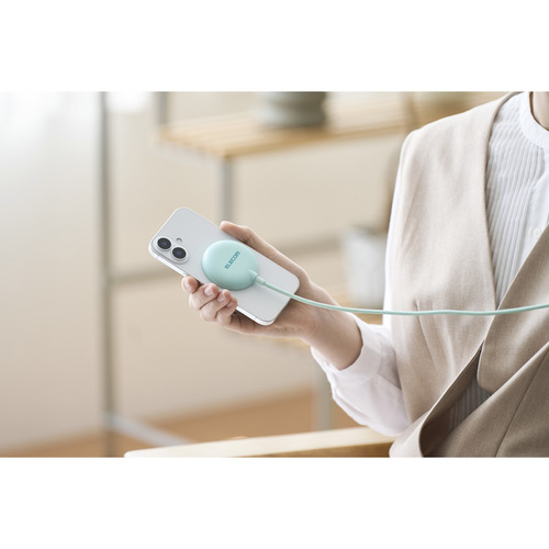 ●マグネットでQi2対応スマートフォンに固定するだけで充電できる、Qi2規格対応のワイヤレス充電器です。マグネットで背面にぴったりくっつくため、ワイヤレス充電中のスマホ操作も楽にできます。最大出力は15Wです。ポップなカラーも揃えたラインアップで、お気に入りを選んで使えます。