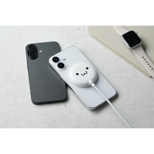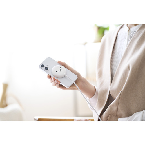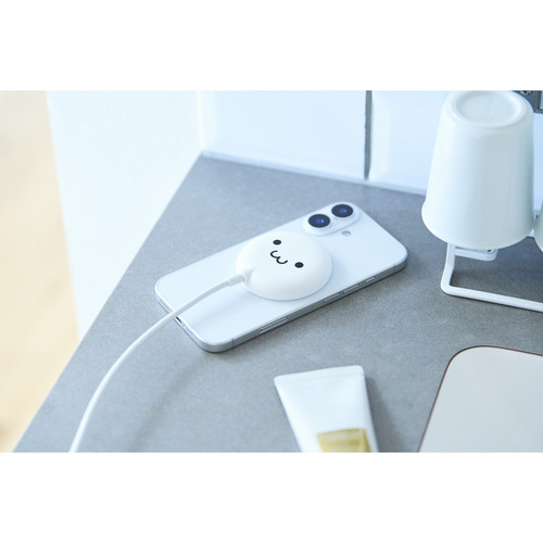 ●マグネットでQi2対応スマートフォンに固定するだけで充電できる、Qi2規格対応のワイヤレス充電器です。マグネットで背面にぴったりくっつくため、ワイヤレス充電中のスマホ操作も楽にできます。最大出力は15Wです。ポップなカラーも揃えたラインアップで、お気に入りを選んで使えます。かわいいしろちゃんモデルです。