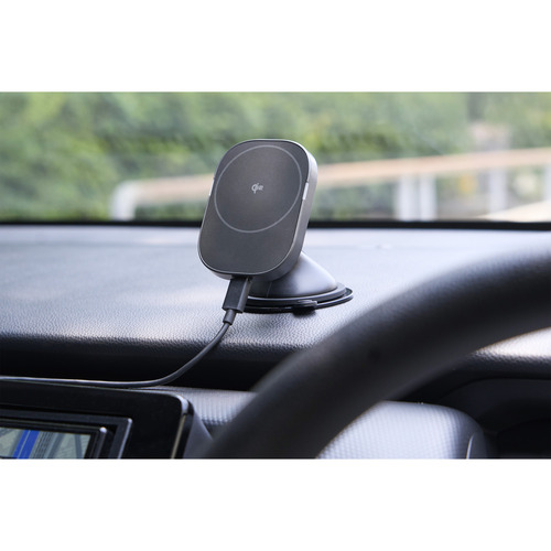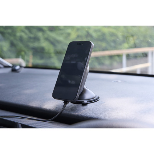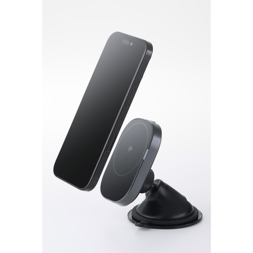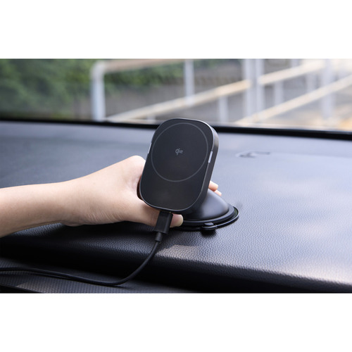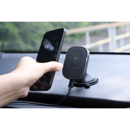 ●マグネットで固定するだけでQi2対応スマートフォンを充電できる、Qi2規格ワイヤレス充電機能付き車載ホルダーです。