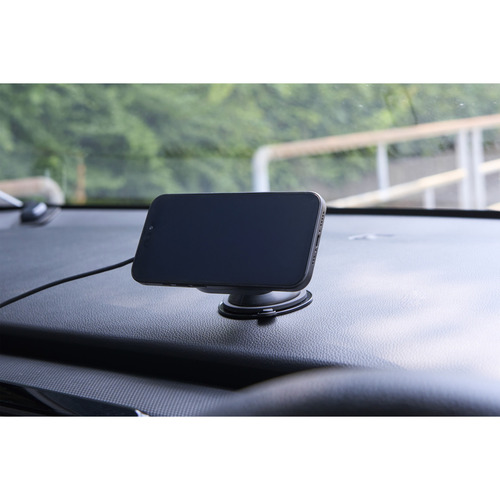 ●スマートフォンを置くだけですぐに充電。マグネットで簡単に着脱可能で、Qi2規格対応ワイヤレス充電ができる車載ホルダーです。無駄な充電の防止や、過熱リスクを低減できる電源スイッチを搭載しています。ダッシュボードの好きな位置にしっかり固定できる、強力ゲル吸盤タイプです。