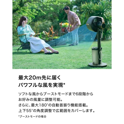 利用シーンにあわせてソフトな風からブーストモードまで6段階からお好みの風量に調整でき、最大20m先まで風を届けます。*3