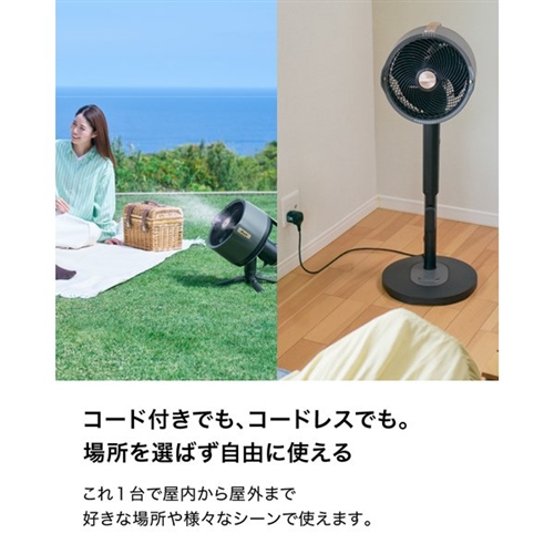 コードレスで最大24時間使えるので*2、コンセントがない場所でも充電切れを気にせず涼しく快適に過ごせます。