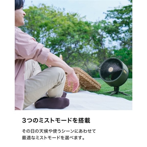 3つのミストモードを搭載しており、その日の天候や使う環境にあわせて最適なミストモードを選べます。