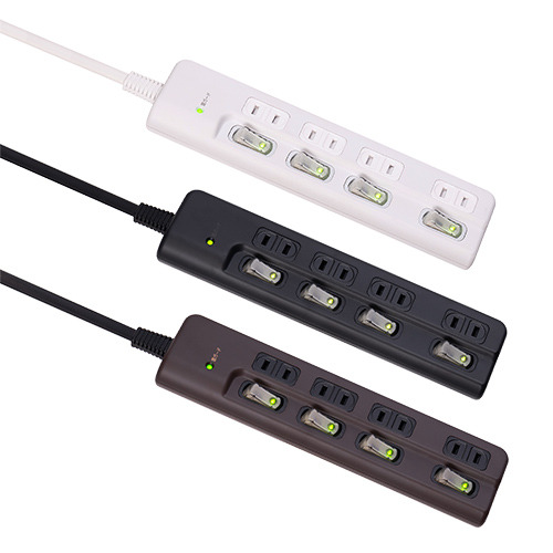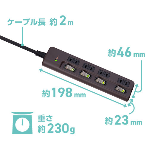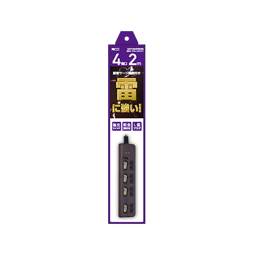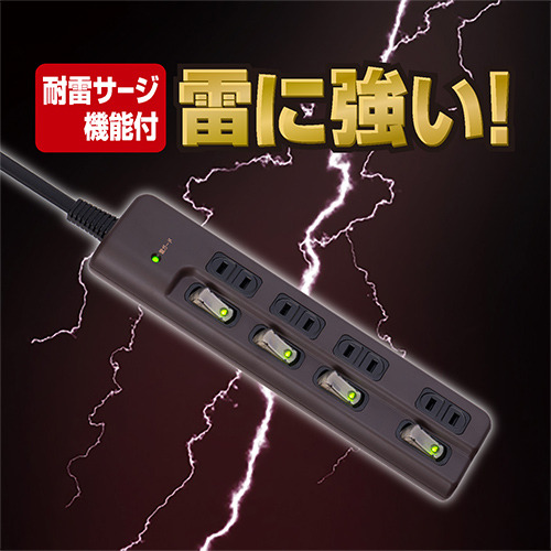 ナカバヤシ OAT-KS4P20BR 耐雷サージスイッチタップ 4個口 独立スイッチ搭載 ケーブル長さ 2m ブラウン