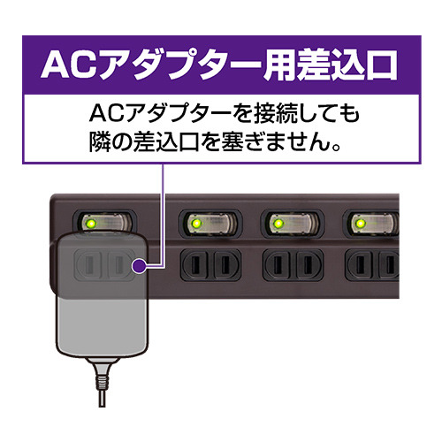 ACアダプターを接続しても隣の差込口を塞ぎません。