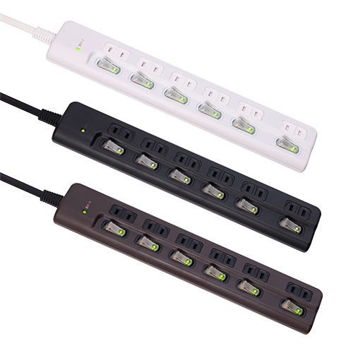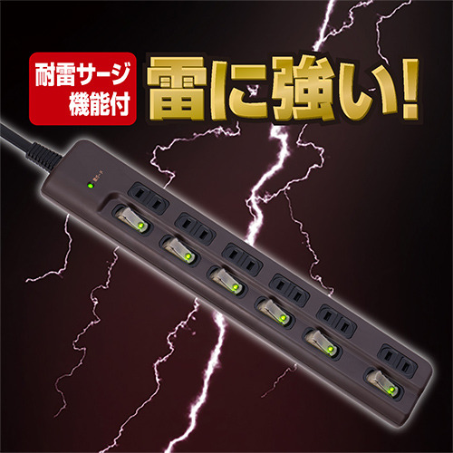 ナカバヤシ OAT-KS6P20BR 耐雷サージスイッチタップ 6個口 独立スイッチ搭載 ケーブル長さ 2m ブラウン