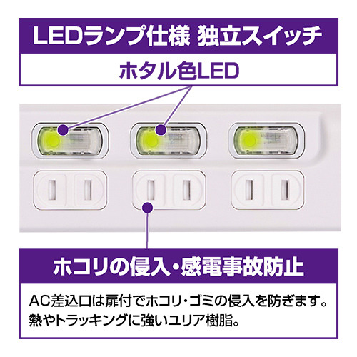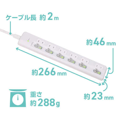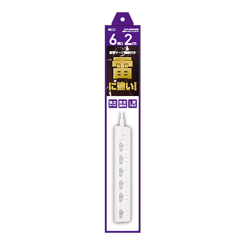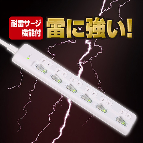 ナカバヤシ OAT-KS6P20W 耐雷サージスイッチタップ 6個口 独立スイッチ搭載 ケーブル長さ 2m ホワイト