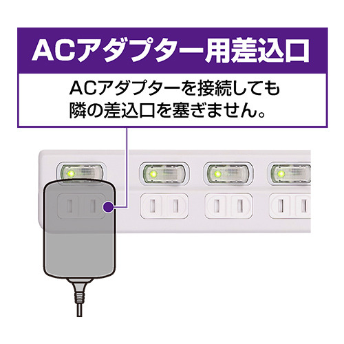 ACアダプターを接続しても隣の差込口を塞ぎません。