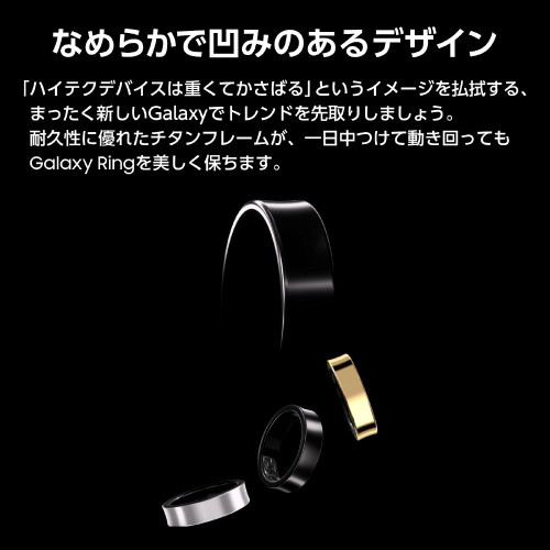 コンパクトで軽量、さらには高い耐久性の備えたデザインのGalaxy Ringは、ユーザーの日常にしっかりと寄り添い、長時間のバッテリーライフによって最大一週間のヘルストラッキングを可能にします。小さいのにパワフルなリング型デバイスが日常のあらゆる場面でユーザーの健康管理をサポートします。