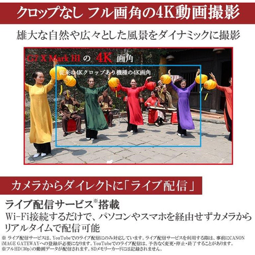 PowerShot G7 X Mark IIIを使ってのYouTubeライブ配信に関しましても、上記の要件が適用されます。YouTubeでのライブ配信は、予告なく変更・停止・終了することがあります。