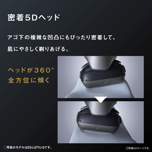 ・密着5Dヘッドが肌にぴったりフィット ・肌接触面積を大きくすることで圧力が分散し、肌への負担を3枚刃よりも約25%低減(★ES-L5シリーズとES-L3シリーズとの肌への押し付け荷重面積比較。当社調べ。<L571U外刃面積>12.3 cm2、<L381W外刃面積>8.8 cm2。面積比により圧力負荷の分散を確認。 使用条件によって効果は異なります。★)
