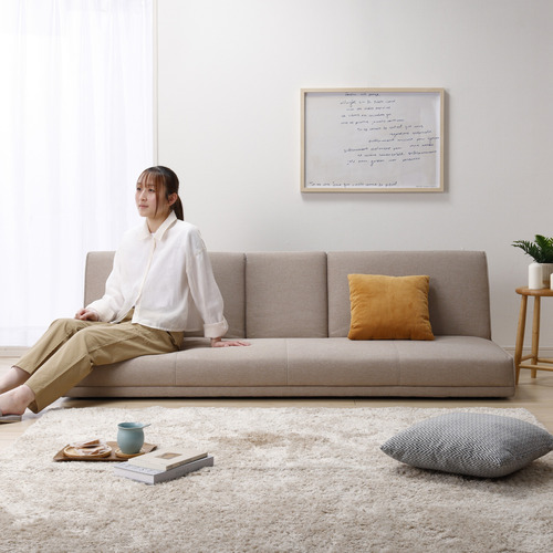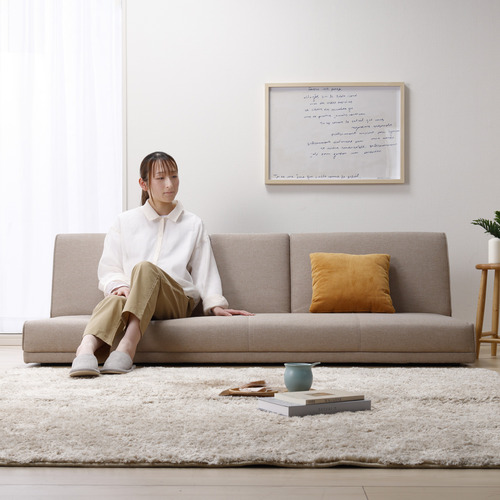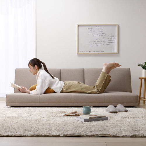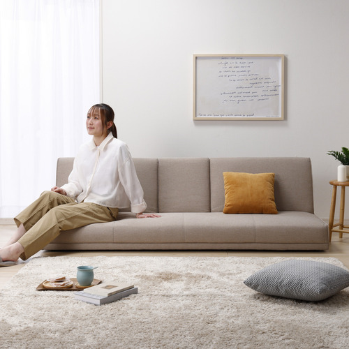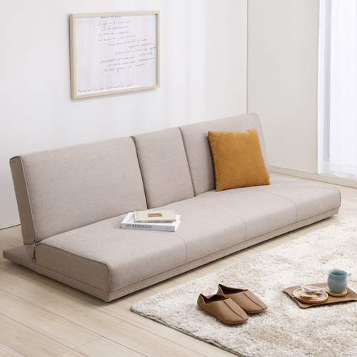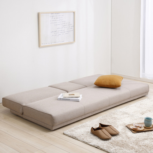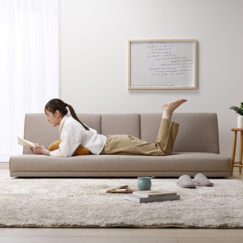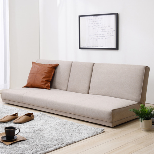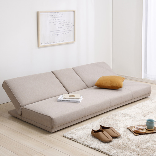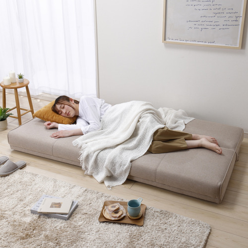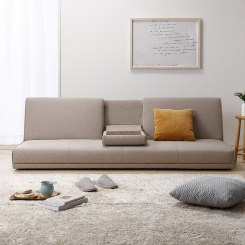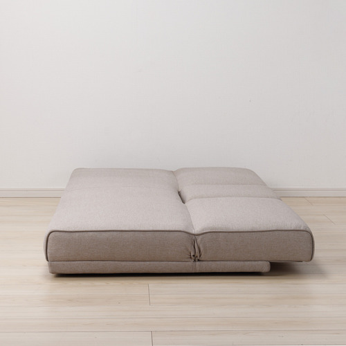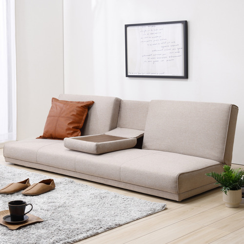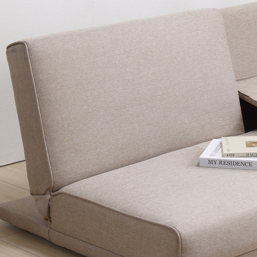 ヤマダオリジナル ローソファベッド フラット 幅185cm 座面高さ15cm リクライニング 折りたたみ式テーブル付き ベージュ