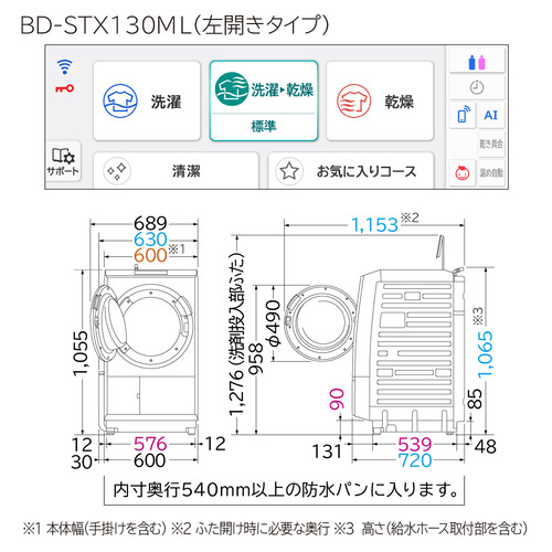 設置可能な防水パンサイズ(内寸奥行):540mm以上