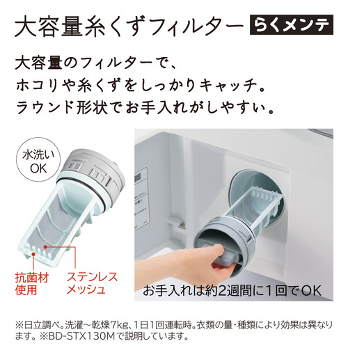 日立 ドラム式洗濯乾燥機 左開き 洗濯13.0kg 乾燥7.0kg 幅63cm らくメンテ ナイアガラ洗浄 風アイロン BD-STX130M ホワイト系