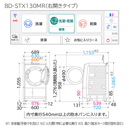 設置可能な防水パンサイズ(内寸奥行):540mm以上