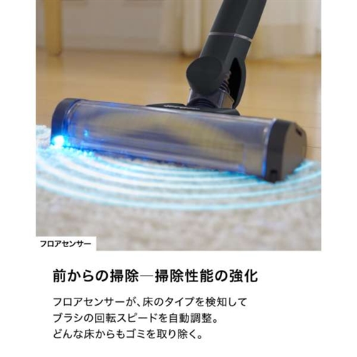 フロアセンサーが、床のタイプを検知してブラシの回転スピードを自動調整。