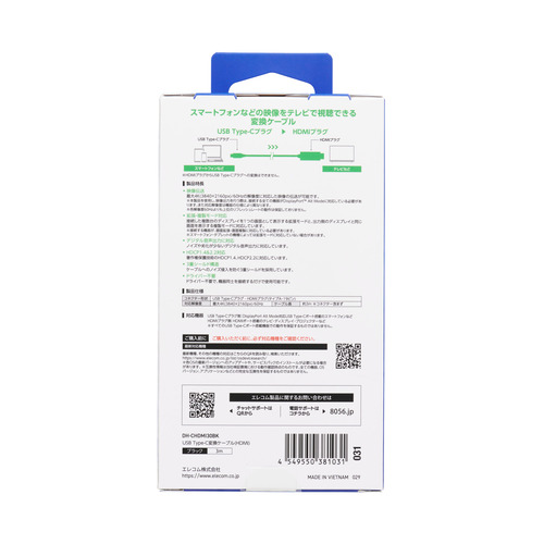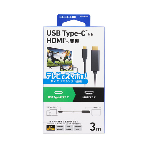 エレコム DH-CHDMI30BK USB Type-C - HDMI変換ケーブル 3m 4K/60Hz対応