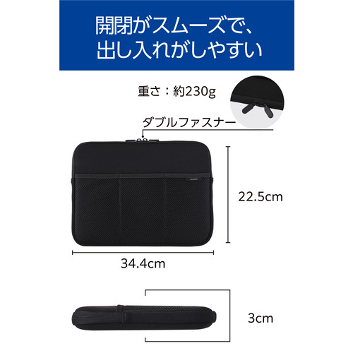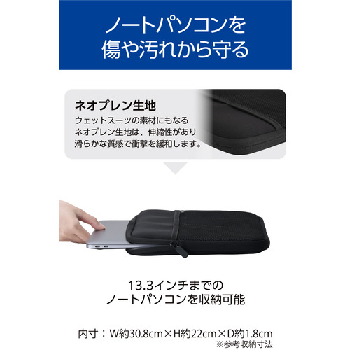●柔らかく伸縮性に優れたストレッチ素材を使用し、ノートパソコンを傷や汚れから守るインナーバッグです。