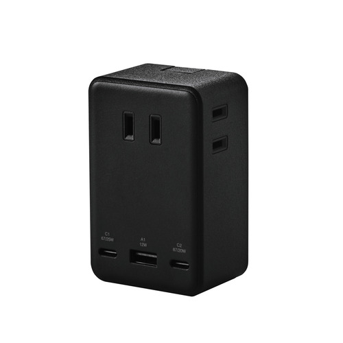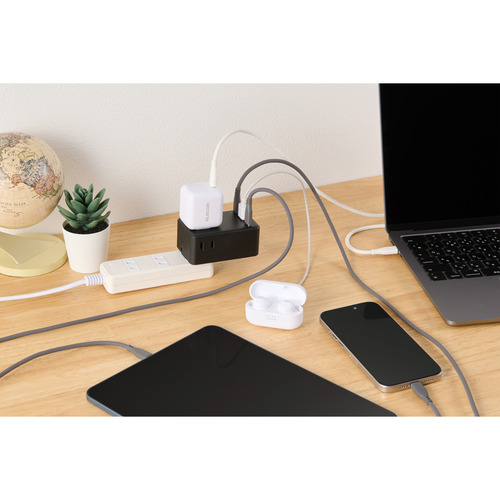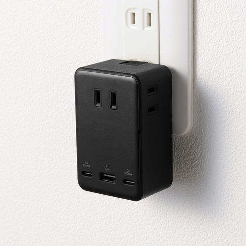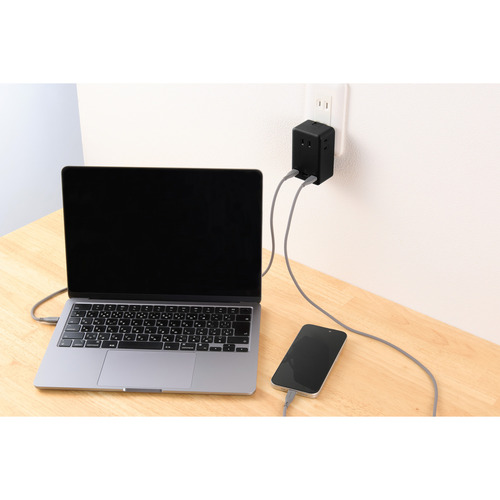 ●ACアダプター不要。パソコンやスマートフォンなどを、これ1台で高速充電。3つのAC差込口、1つのUSB-Aポート、2つのUSB Type-C(TM)ポートが一体になったモバイルUSBタップです。最大6台のデバイスを同時に接続でき、コンセントの少ない場所で活躍します。出張や旅行時などの多い荷物がこれ1つでまとまり、コンパクトサイズで持ち運びも便利です。