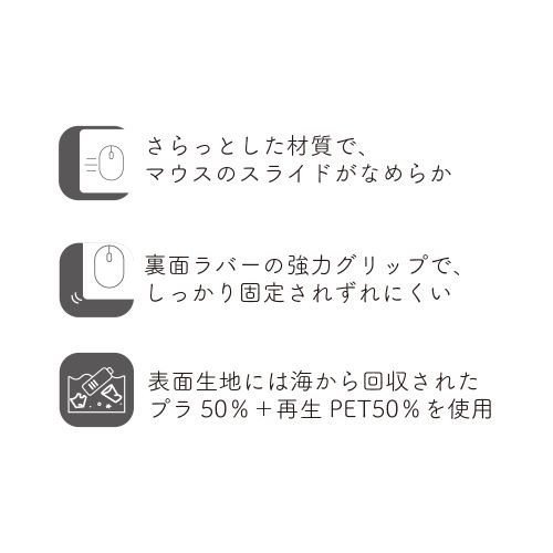 ●海から回収したプラスチックを再利用した表面生地100%リサイクルマウスパッド。