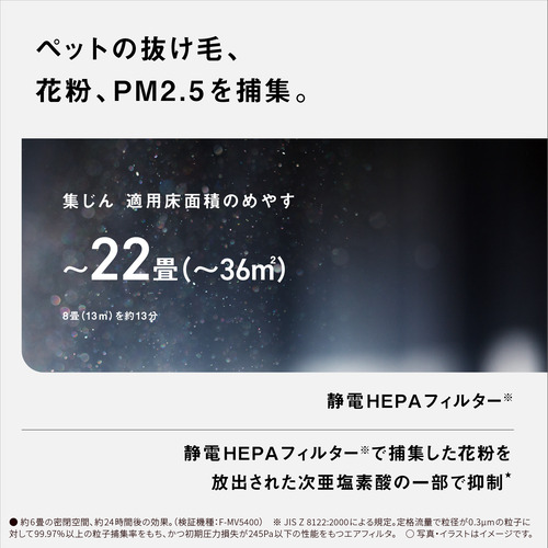 ・コンパクトサイズながら大型フィルターを搭載にし、22畳までのお部屋の集じんにも対応