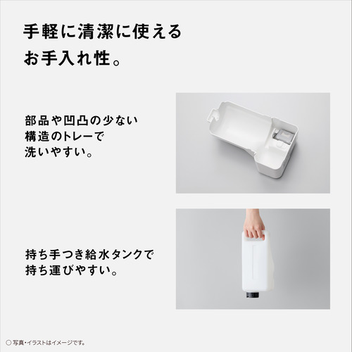 ・排水頻度を週1回から月1回に ・持ちやすい取っ手付の給水タンク/凹凸が少なくお手入れのしやすいフラットトレーを採用