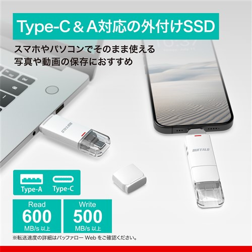本商品は USB Type-A端子とUSB Type-C端子の両方を備えています。出荷時にexFATでフォーマット済み。パソコンだけでなく、スマホやタブレット等さまざまな機器で、フォーマットや変換アダプター無しでそのまま使用できます。
