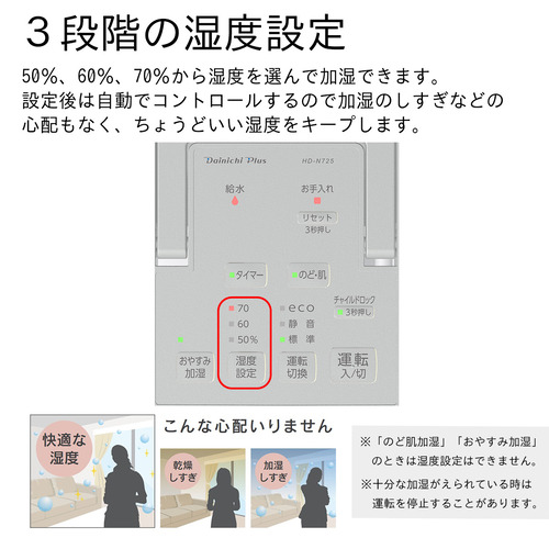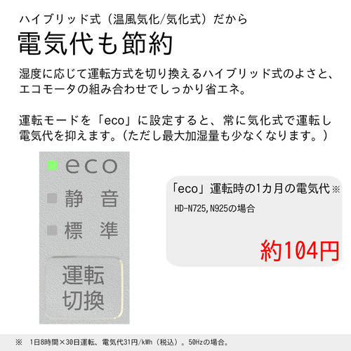 ●標準、eco、静音、のど・肌、選べる加湿モード