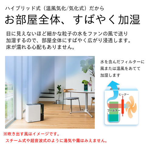 設定湿度に達するまで加湿量を約15%アップ、より早くパワフルに加湿します