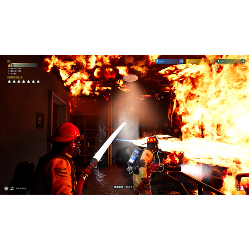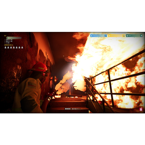 4人までのオンラインマルチプレイが可能。仲間と共に現場に出動し、消火と救命活動を行おう。