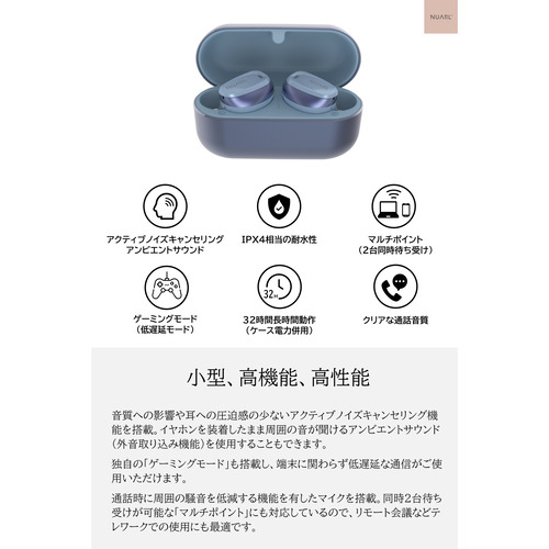 NUARL N6LITE-NV N6 Lite EARBUDS 完全ワイヤレスイヤホン 左右分離 ノイズキャンセリング Bluetooth対応 ネイビー