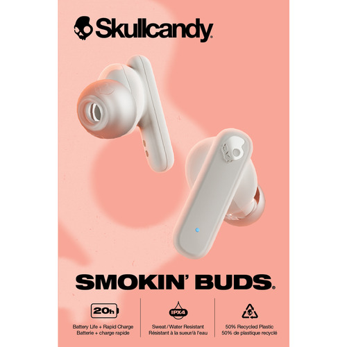 Smokin' Budsは再生プラスチックを50%使用し環境にも配慮しています。全てのSkullcandy製品は100%再利用可能なパッケージを使用し、自然を守るために地球にやさしい取り組みを行います。