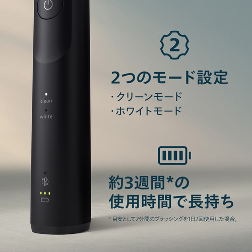 使用時間:約 3 週間(満充電後、2 分間のブラッシングを1 日2 回の場合)