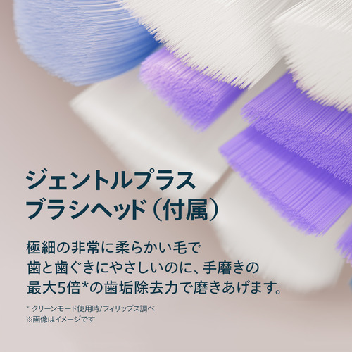 敏感な歯と歯ぐきもやさしく磨きます。搭載されたS2 ジェントルプラスブラシヘッドは、極細の非常に柔らかい毛が、植毛されていてやさしいあたりのブラッシングを実現します。3,000本以上の極細の密集して植毛された毛束により、歯と歯ぐきにやさしいのに、手磨きの最大5 倍の歯垢除去力で磨き上げます。