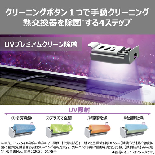 内部清潔機能:UVプレミアムクリーン除菌/マジック洗浄熱交換器