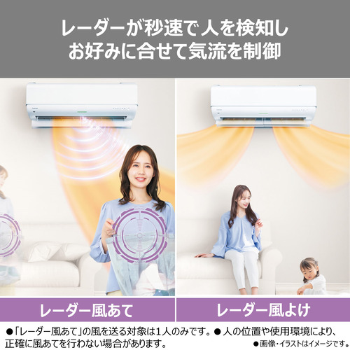 気流制御:上下左右スイングルーバー/セパレート無風感ルーバー/サーキュレーター