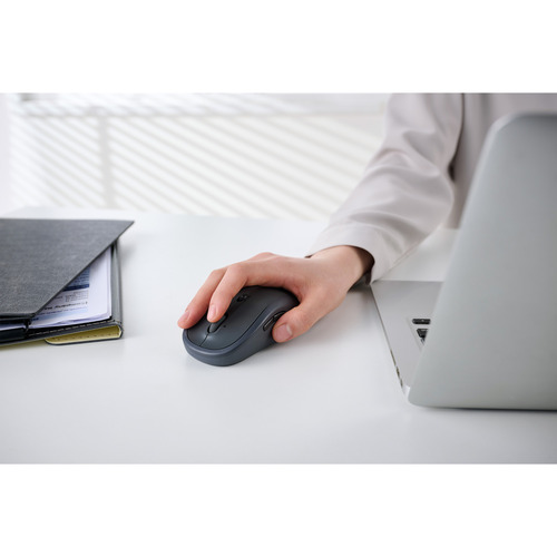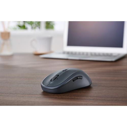 ●左右ボタンとチルトホイールには静音スイッチを採用。クリックしてもカチカチ音が響きません。ミーティング中やリビング・カフェ、シェアオフィスなど周りに人がいる場面でも音を気にせず使えます。