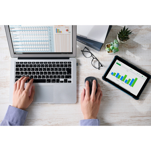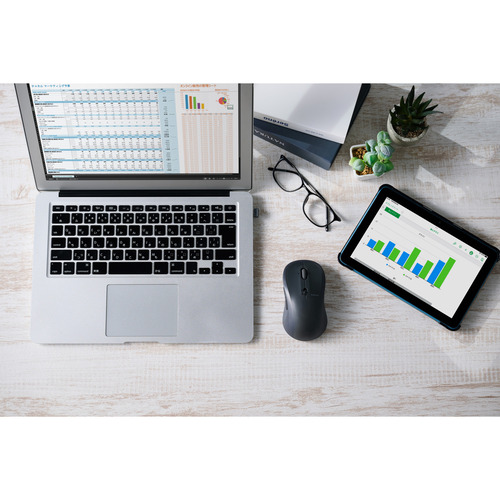 ●パソコンのUSB-Aポートにレシーバーを挿すだけの無線2.4GHz接続と、USB-Aポートのないパソコンやタブレットでも使えるBluetooth(R)接続の両方に対応するワイヤレスモデルです。