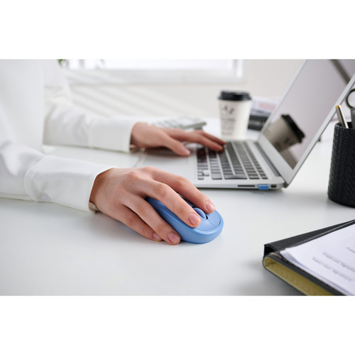 ●左右ボタンとチルトホイールには静音スイッチを採用。クリックしてもカチカチ音が響きません。ミーティング中やリビング・カフェ、シェアオフィスなど周りに人がいる場面でも音を気にせず使えます。