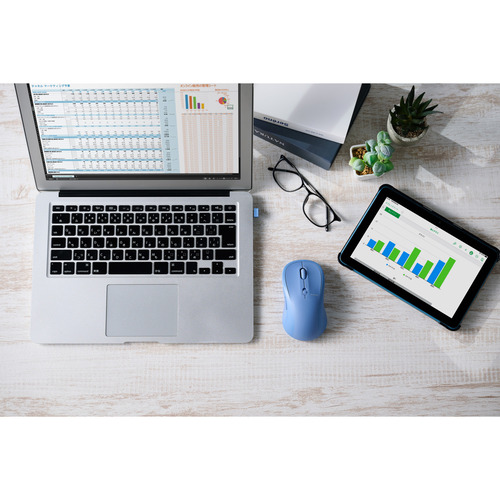 ●パソコンのUSB-Aポートにレシーバーを挿すだけの無線2.4GHz接続と、USB-Aポートのないパソコンやタブレットでも使えるBluetooth(R)接続の両方に対応するワイヤレスモデルです。
