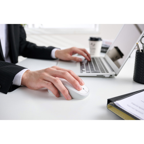 ●左右ボタンとチルトホイールには静音スイッチを採用。クリックしてもカチカチ音が響きません。ミーティング中やリビング・カフェ、シェアオフィスなど周りに人がいる場面でも音を気にせず使えます。