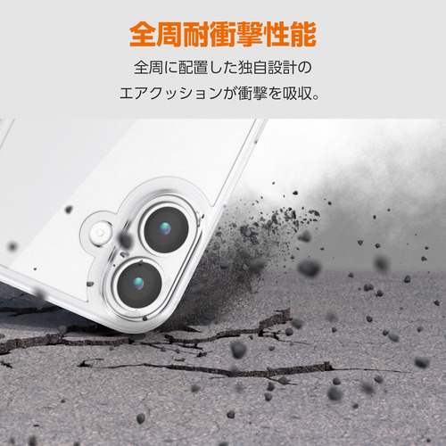 エレコム PM-A25AD3OTCR iPhone 17 ケース ハイブリッド カバー D3O 磁気吸着対応メタルステッカー付 クリア
