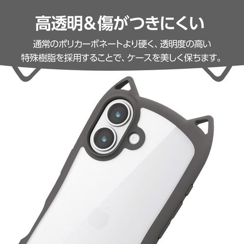 エレコム PM-A25AFCCATCH iPhone 17 ケース ハイブリッド カバー 磁気吸着対応メタルステッカー付 猫耳デザイン スモーキー