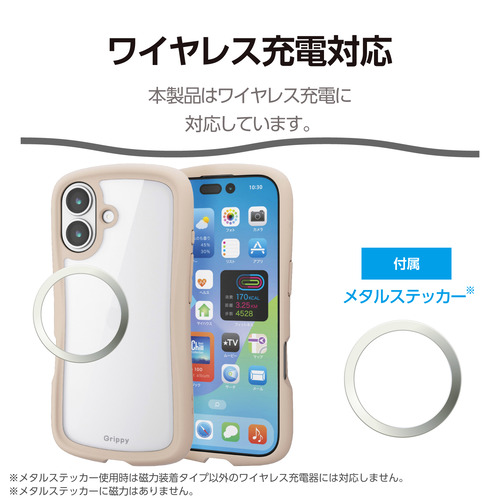 エレコム PM-A25AGRPFCBE iPhone 17 ケース ハイブリッド カバー 磁気吸着対応メタルステッカー付 Grippy ベージュ