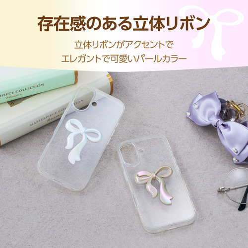 ●透明感のあるクリア素材に、さりげなく輝くリボンのアクセントが可愛いハイブリッドケースです。